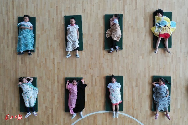 “趴在课桌上睡觉,对呼吸、血液循环、眼球不好,小学生正是长身体的时候,中午睡好了,下午才有精神学习和运动。”红领巾精武学校相关负责人介绍,为了保障健康和安全,体育馆每天午休前都会提前清洁消毒,睡垫之间的间隔都大于一米。学生也可以自带眼罩,加快入睡。
