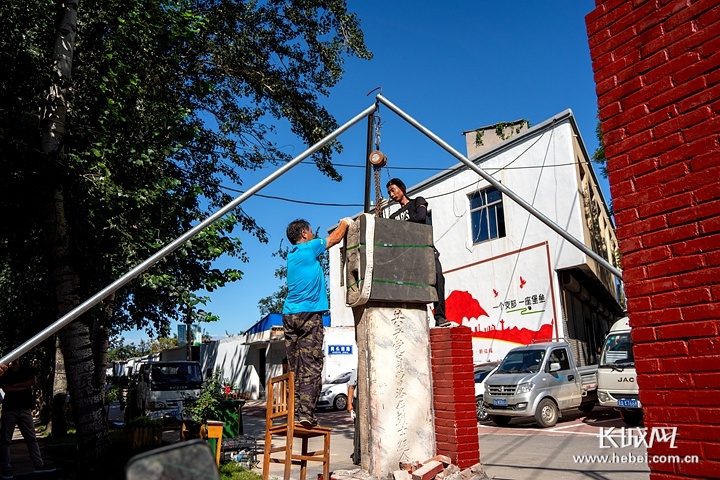 “咱们做得是庄严之事,容不得半点马虎。”工长高兰平不停地叮嘱身边的队友,肃立默哀、剔除砖框、固定碑体,5名队友已经为烈士碑迁移忙碌了一个多小时。