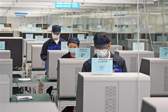 图为:武汉华大智造科技有限公司,工作人员正在为高通量基因测序仪做出厂前的检查。(湖北日报全媒记者 李溪 摄)