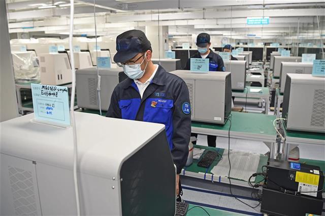 8月27日,光谷科创大走廊大健康产业集群带光谷生物城。武汉华大智造科技有限公司生产线上,正忙着为即将交付的高通量基因测序仪做出厂检测。