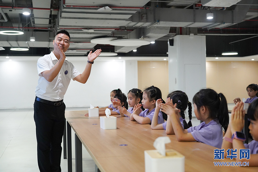 “餐前要洗手,取餐需适量……”习惯课程的老师用一首首《小云朵七礼歌》让新入学的同学们从歌词里学会良好的生活习惯。新华网 刘文静 摄