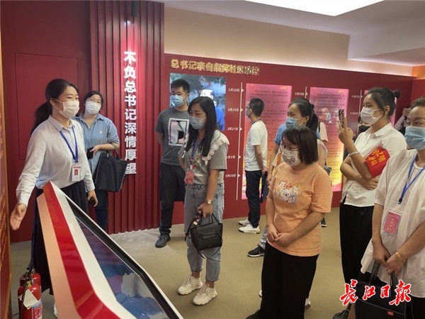 各社区干部在东湖新城社区战疫文化室聆听分享。 记者晋晓慧 摄
