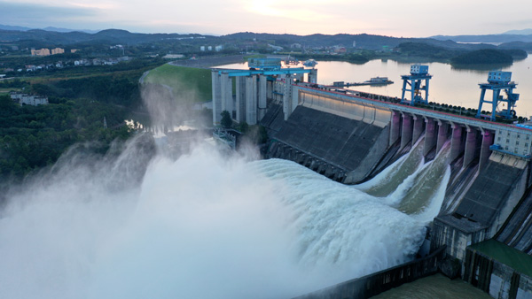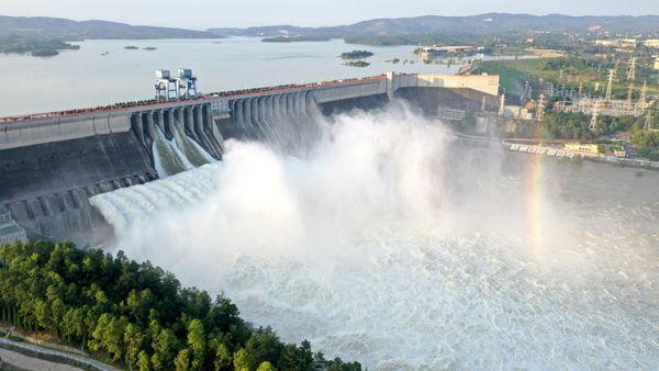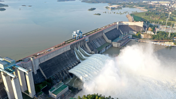 近期,受汉江上游及丹江口库区持续强降雨影响,丹江口大坝上游多个水库水位超限泄洪,丹江口水库入库流量持续增长,9月2日15时库区水位165.71米。17时增至165.76米,水库入库流量高达14300m³/s。为应对后期可能到来的20000m³/s 的洪峰,2日晚6时,丹江口大坝再开启1个堰孔,同时开启6个深孔、2个堰孔泄洪。