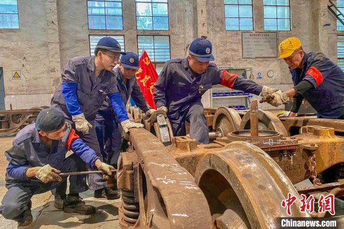 “车辆调车入库,我们需要对整车各部位进行分解,然后分工开展整车焊修、车身铆接、制动调修、台车检修、轮轴换修等维修工序,最后进行全车组装。”为保障米轨货车如期投入中越国际联运班列,班组工长任碧良要带领班组37名职工完成米轨货车临修和专项修各项检修任务。