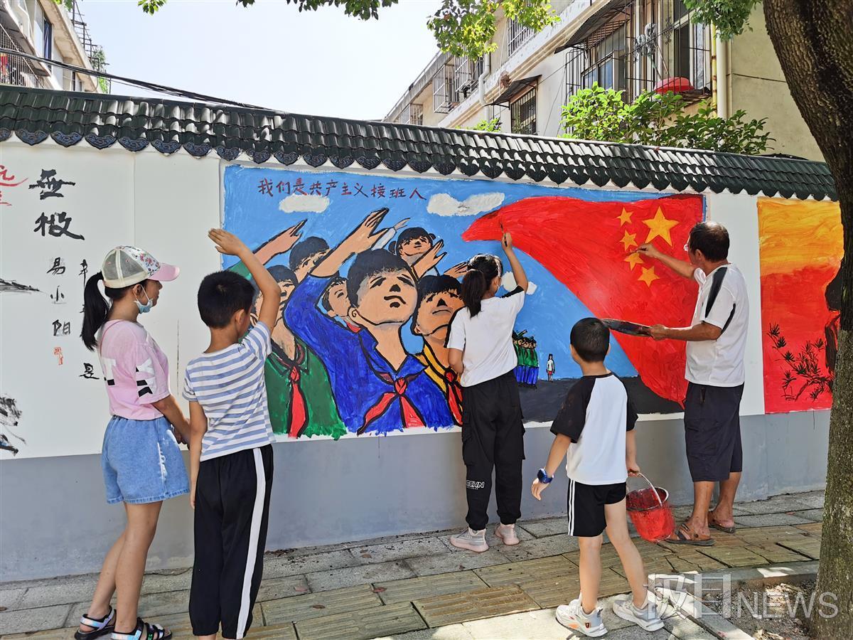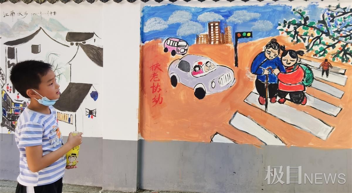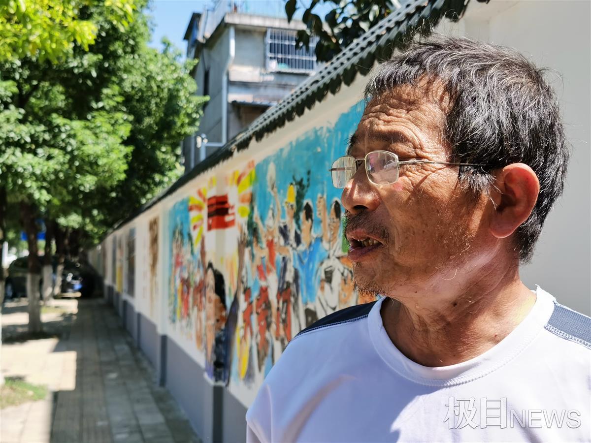在东西湖区金银湖小学对面,有一面经过翻新的百米围墙,汉阳西大街壁画作者易小阳受邀来到这里创作。易小阳来到这里,引来众多志愿者的参与,志愿者包括湖北美院的学生、金银湖小学老师、绘画班的小朋友。经过20天的创作,百米围墙成了百米画廊,道路成了景观大道。