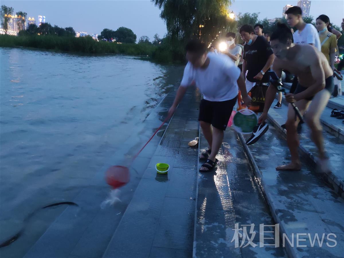 9月4日傍晚,汉口江滩三阳路广场没入江水的低层亲水平台,突然窜出一条水蛇,把当时正在戏水的市民吓了一跳。