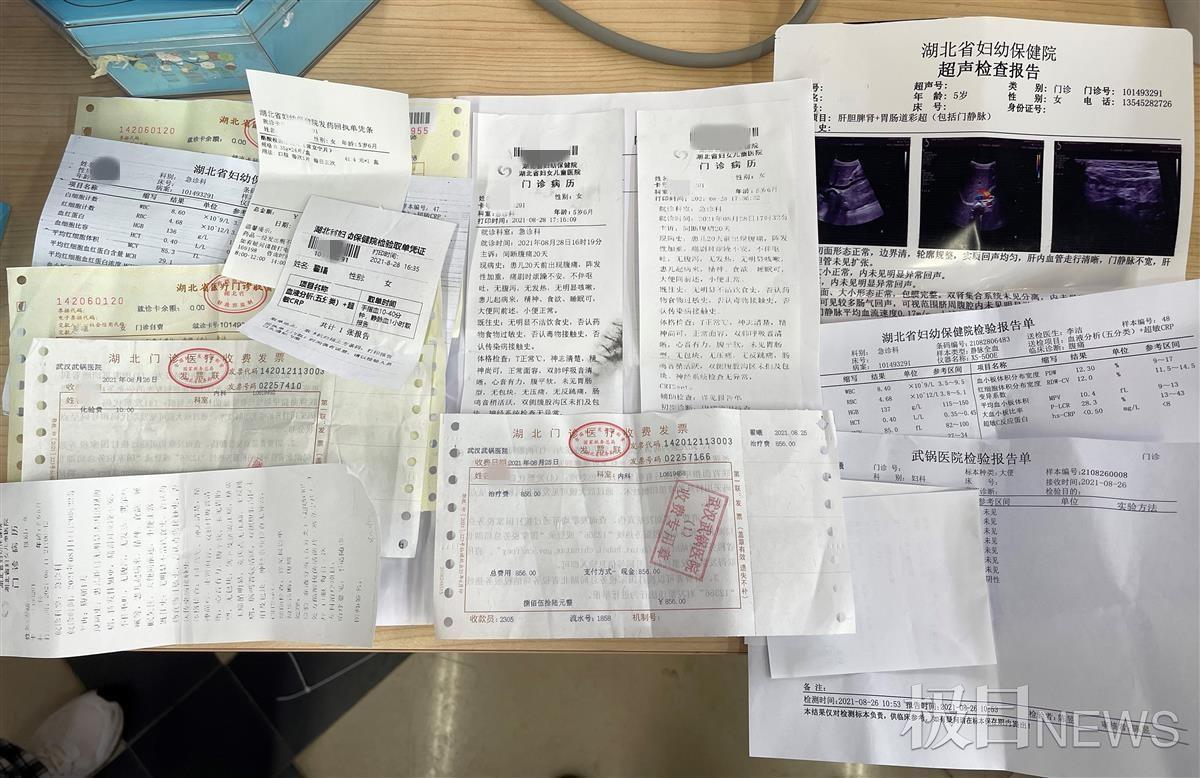 记者在陈女士出示的化验单、缴费单上看到,近一个月以来,她带着孩子辗转武科大天佑医院、省妇幼保健院、武汉武锅医院等多家医院进行检查治疗。除了吃药,还进行了多次的中医按摩。