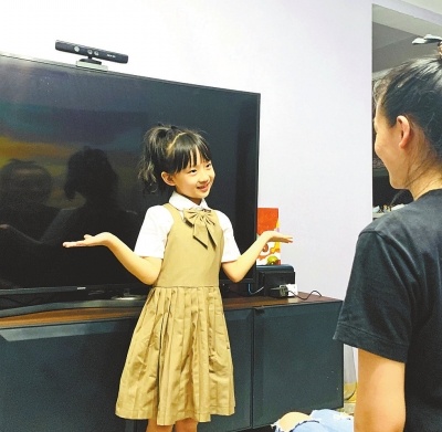 “我去上学校,天天不迟到。爱学习,爱劳动,我们要为祖国立功劳。”放学回家后,一年级新生康语芩用稚嫩的童声,一下就融化了妈妈的心。学生杨天眷边比划着有趣的手势,边一本正经地背诵,活像一位“说书人”,瞬间逗乐了全家。