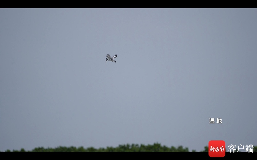 上午涨潮后滩涂被淹没,此时斑鱼狗是涨潮的获益者,它盘桓水面寻食,发现猎物后迅速俯冲而下获取食物。