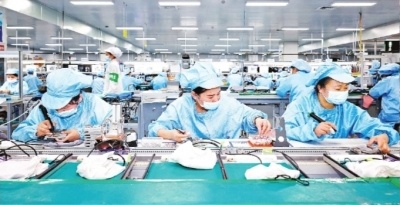9月2日14时,长江日报记者探访位于光谷三路的长飞科技园,穿上特制防静电服、戴上防尘帽,进入长芯盛有源光缆无尘生产车间。占地近5000平方米的车间内,百余名工人在流水线上有序操作。