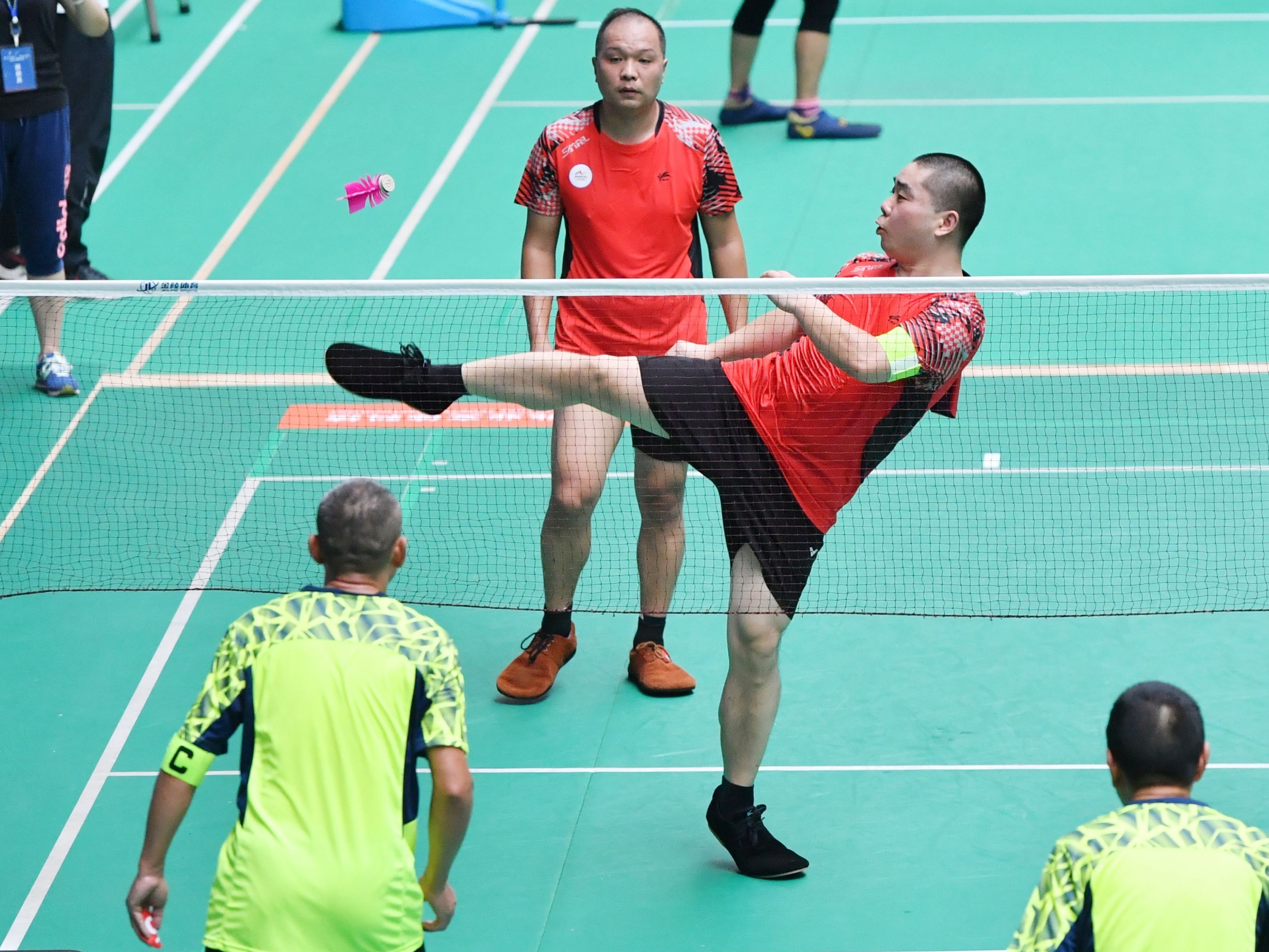 记者查看毽球相关比赛规则得知,网毽比赛分竞技毽和平踢毽两种,国际上通用的比赛方式就是竞技毽,全运会毽球比赛采用的同样是竞技毽比赛规则,不限技术动作和难度。相比平踢毽必须3脚过网、11分制的规则,竞技毽可以4脚过网,21分制。“竞技毽的难度大、观赏性高,对运动员的身体素质要求也高得多,年龄偏大的人根本没法玩。”市毽球协会副会长梅雁武说。