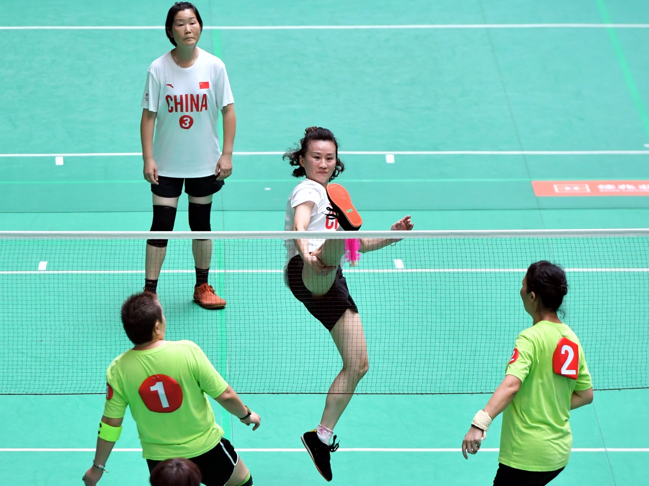 市运会成年人体育类毽球比赛中。长江日报记者喻志勇