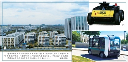 ①锵玫科技所在的临港科创园区正迎来“2.0版”转型升级,物理空间增加之外,“创业苗圃+孵化器+加速器”的阶梯式孵化模式也得到传承。记者 邢千里摄 ②③锵玫科技推出的智慧消防机器人、无人驾驶小巴。 制图:李洁