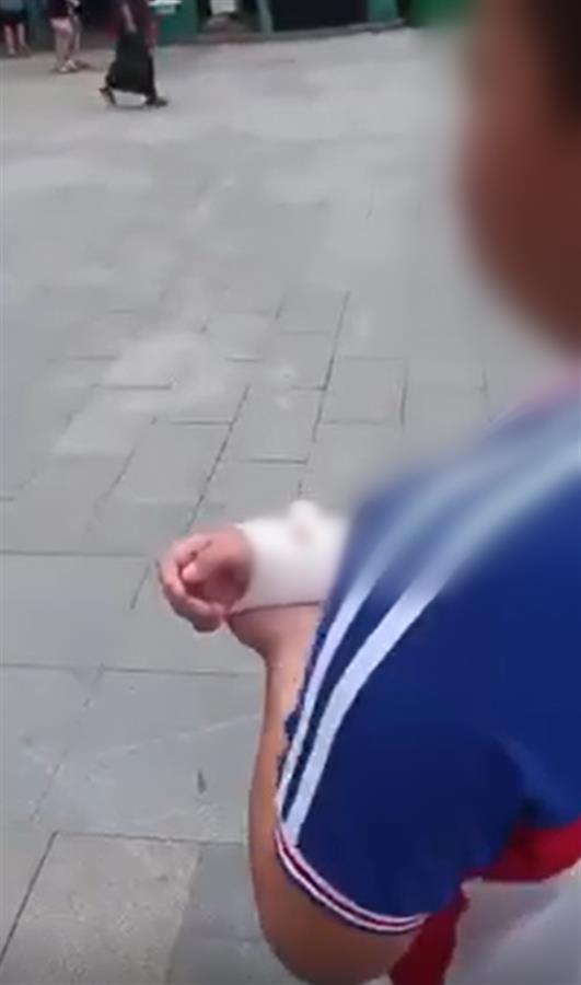 网传视频显示,一名小学生向当地医院走去,他的右手处被包扎起来。随后,医生对他的伤口进行处理,学生因疼痛而大声哭喊。