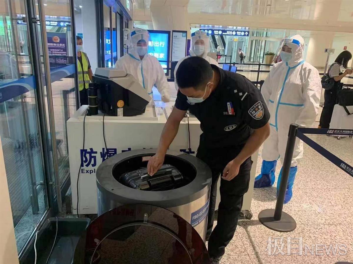 湖北省公安厅机场公安局巡特警介绍,9月7日上午10时35分左右,他们接到指挥中心转警,12号门处报警有疑似爆炸物,前场值班警队和联勤联动值班人员赶到现场发现,触发报警的是一位大学生的行李箱。