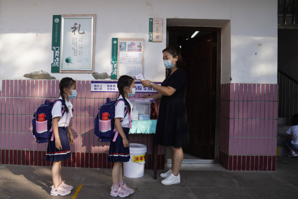 记者看到,从7时半到8时10分,孩子们陆续到来,刘莺挨个给他们测量体温,并在学生因病缺课本、因病跟踪本、体温记录本、通风消毒记录本这4个本子上分别写下当天的记录,再交到学校医务室汇总。