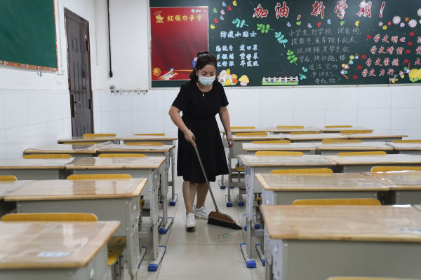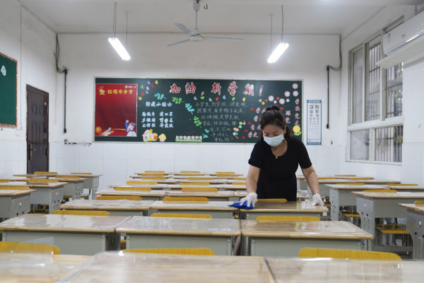 她把教室打扫完之后,又用配比好的84消毒水把课桌全部抹干净,还把地板仔仔细细拖了一遍。半小时后,她又用清水把课桌重新擦了一遍,这才关灯、关窗、关空调,锁门离开教室。走出教室时,天色已昏暗,操场上已空无一人。