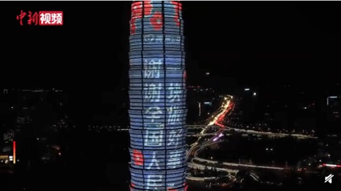 3、郑州大玉米滚动播放献爱心网友昵称 8日,河南郑州地标建筑“大玉米”滚动播放为河南献爱心的网友昵称。7月下旬,河南多地遭遇极端强降雨袭击,全国超1000万网友在网络公益平台为河南防汛救灾捐献超过5亿元人民币,郑州以此向全国人民表达谢意。(@中新视频)