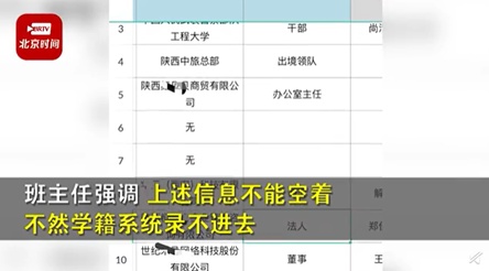 4、官方回应幼儿园要求填写家长职务 近日,有网友称陕西西安博雅学园幼儿园学生入学时,要求家长填写单位、职务等并称若信息空白,学籍系统录不进去。有家长担心孩子被幼儿园区别对待。当地教育局表示,此事系老师个人行为,正常情况只登记户口所在地和住址信息。(@中国新闻周刊)