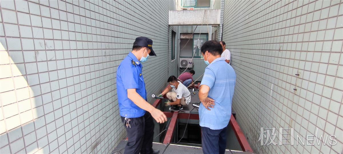 汉口一栋27层高楼一处“天井”,被房主利用进行违建。9月10日,硚口区汉水桥街城管发现后,当即进行了拆除。