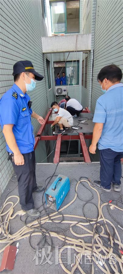 9月10日,汉水桥街城管执法队员例行巡查时,发现辖区航天星苑小区有装修施工噪音,逐遁声查找,发现27楼“天井”处,正在施工违法建筑,队员立即上门检查。据施工现场负责人介绍,房主是其朋友,才从国外回国,此房屋已闲置十余年,这次回国后打算翻新房屋,考虑“天井”处可利用,房主便进行了违法建设。