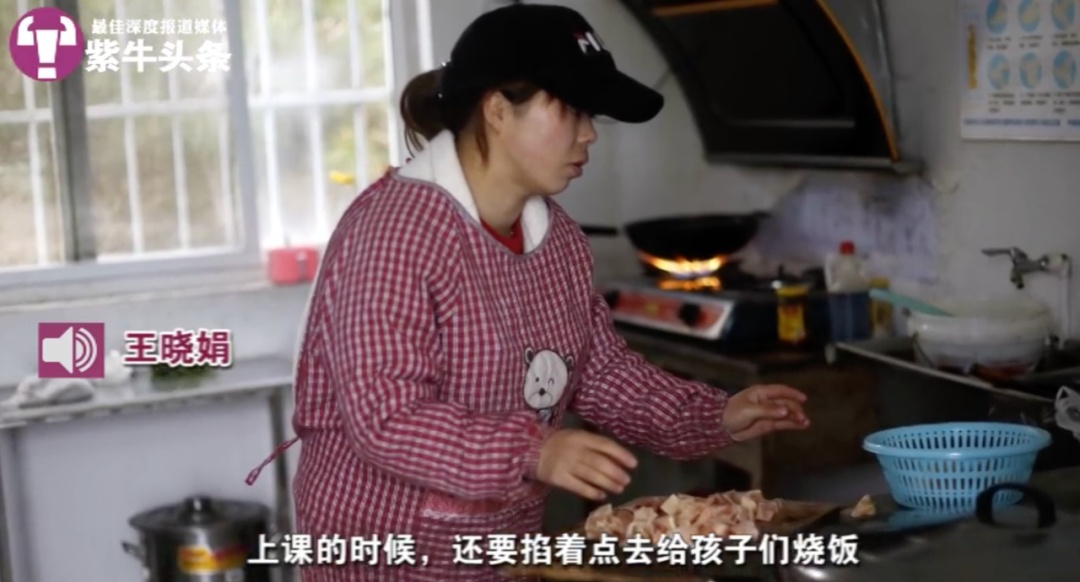 她常会择菜、洗菜、烧饭。