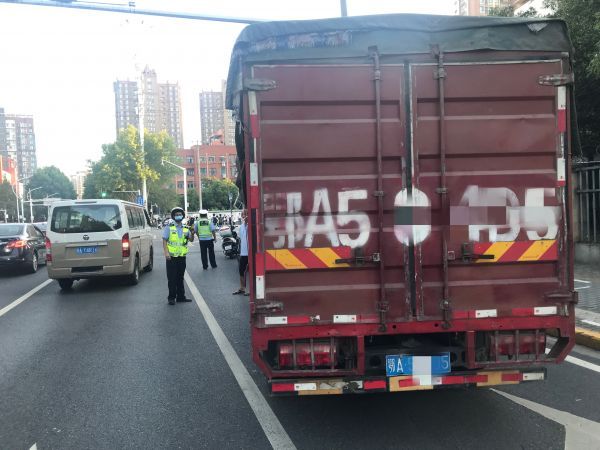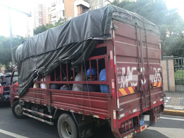 9月7日晚高峰,洪山区文昌路上的武珞路实验小学正值放学,洪山交通大队民警张兵正在执勤护学岗,发现迎面驶来盖着篷布的货车车厢人头攒动,立刻将车辆拦停检查,发现里面坐满了人。
