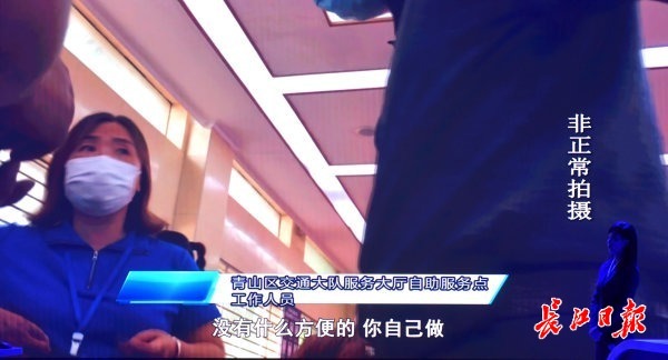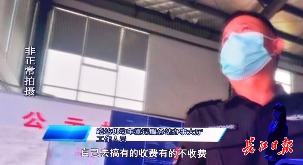 但是巡查员在沌口路达机动车登记服务站的业务大厅现场咨询时,不同工作人员却给出了不同回答,有的说不收费,有的说要收费。