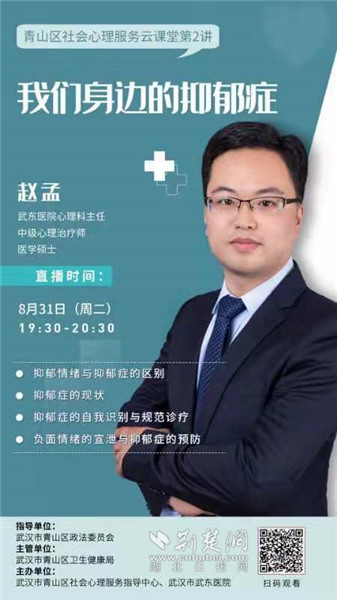 “每个人在表达焦虑、抑郁等不良情绪时的信号往往不一样:食欲、睡眠、注意力、兴趣点、精力都有可能发生改变。”8月31日,心理科主任赵孟通过云课堂讲授《我们身边的抑郁症》。