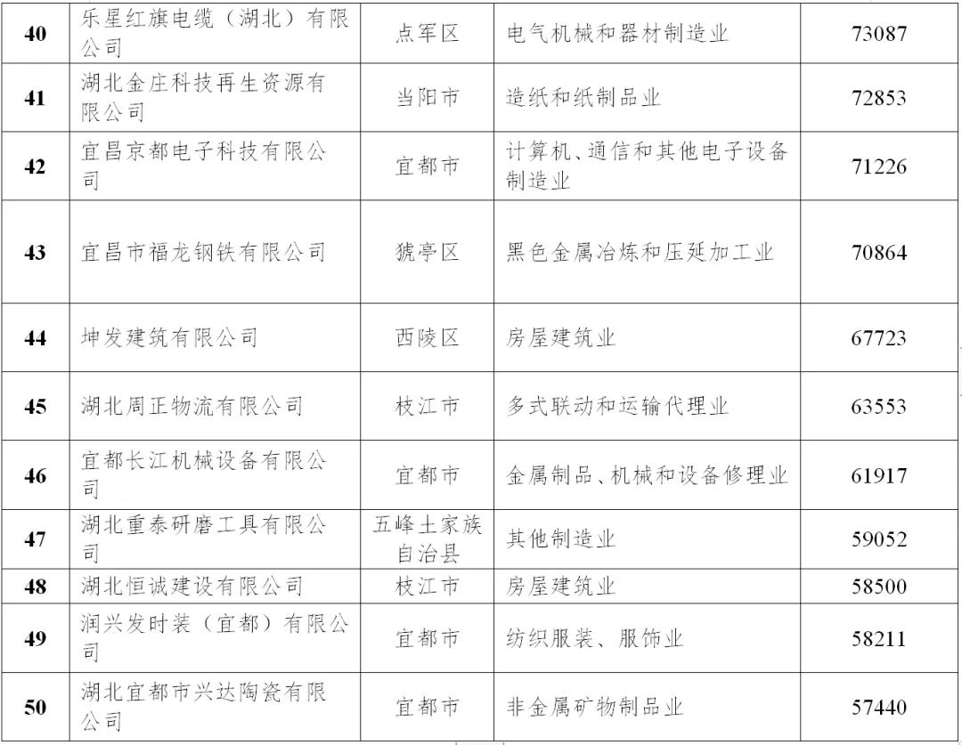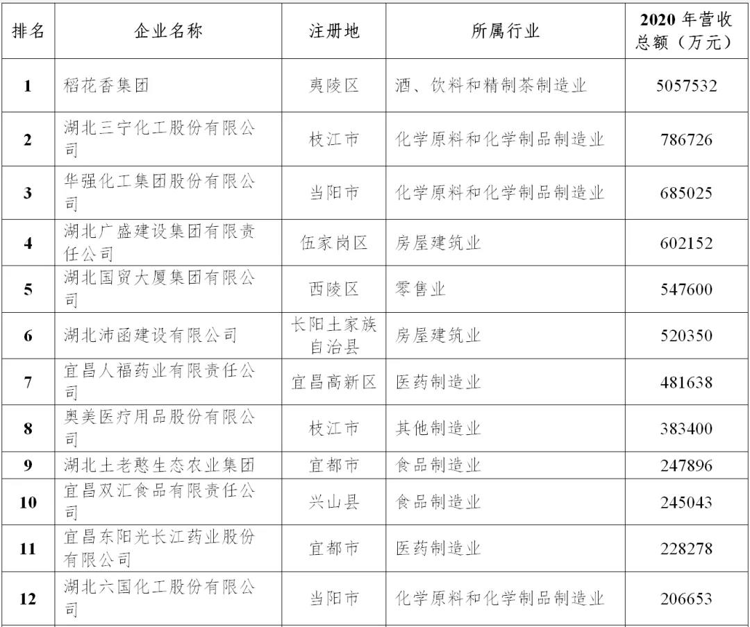 2020年度宜昌民营企业50强榜单发布。来源:三峡日报