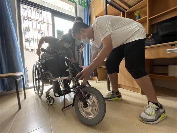 同学帮忙调试轮椅