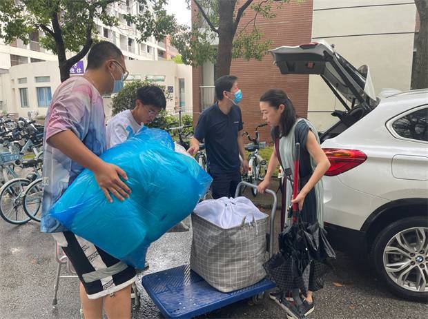 同学帮忙运送行李