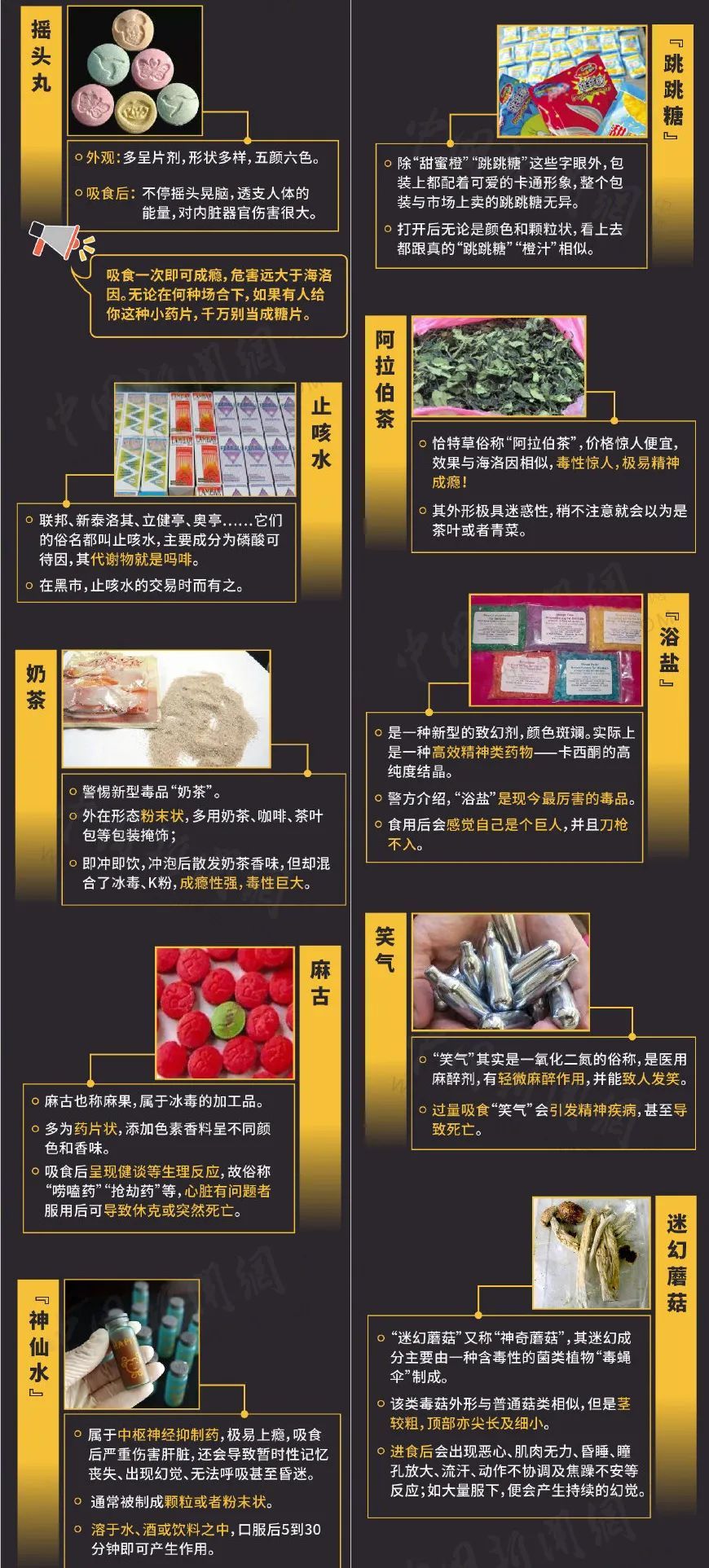 近年来,随着互联网的发展,新型毒品层出不穷,这些毒品经过“乔装打扮”,成为奶茶、电子烟、巧克力、止咳水等潜伏在我们身边,让人难以分辨、放松警惕。