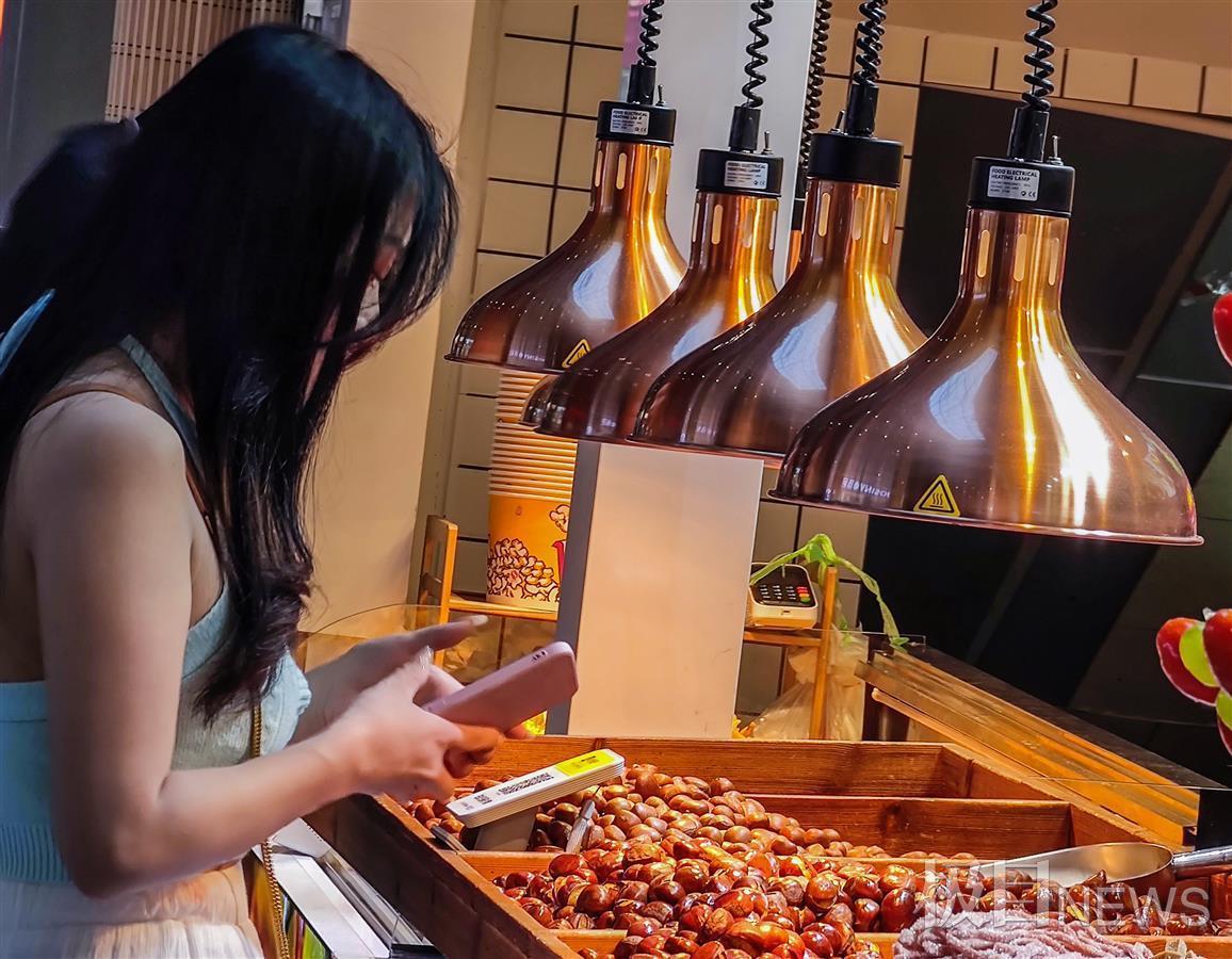 据悉,湖北省内罗田、神农架、恩施、十堰等地板栗已成熟,随着山货经济的需求流向武汉大街小巷。栗子被炒得玛瑙粒般红紫发亮,散发着诱人的焦甜香气。逛街走累了的、回家路上的“吃货”们,忍不住就想咬一口、带上一包与亲友分享,品味武汉初秋的幸福。