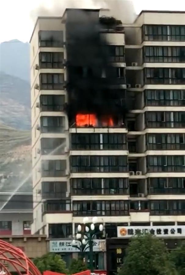 9月13日,在甘肃陇南,武都区一居民小区的高层住宅楼起火,大火从居民家阳台冒出并波及上面几层住户,事发后,当地、民警、消防部门赶到现场救援。极目新闻记者获悉,事发时起火楼层居民家中无人,已疏散周边居民,暂无人员受伤。
