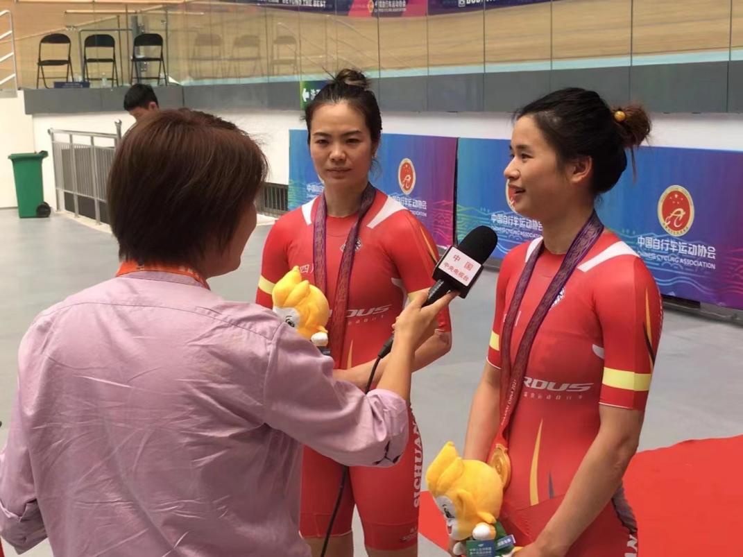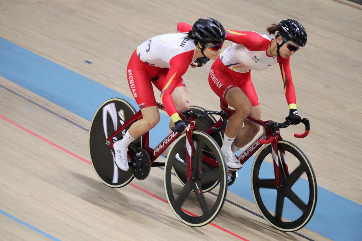 9月13日,第十四届全运会场地自行车比赛在河南洛阳体育中心自行车馆进行。在女子麦迪逊赛决赛中,四川队刘佳丽/曹媛以27分的成绩,领先第二名3分夺冠。