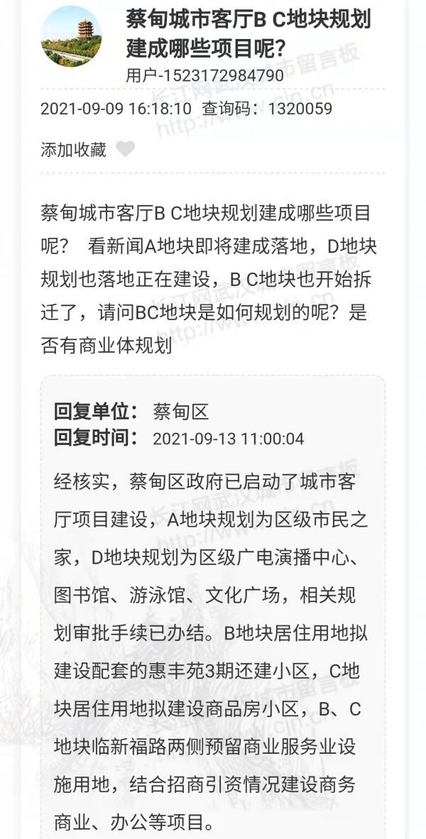 网友:蔡甸城市客厅B、C地块规划建设哪些项目,是否有商业规划?