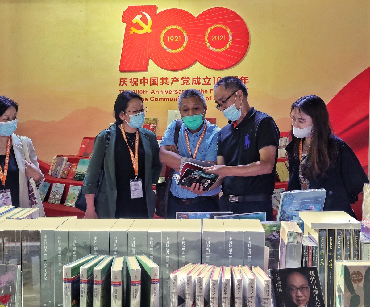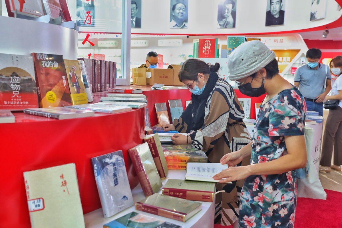 观众在中国出版集团展台翻阅图书。(中国日报记者 姜东 摄)