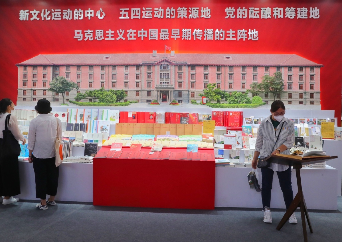 观众在北京出版集团展台参观。(中国日报记者 姜东 摄)