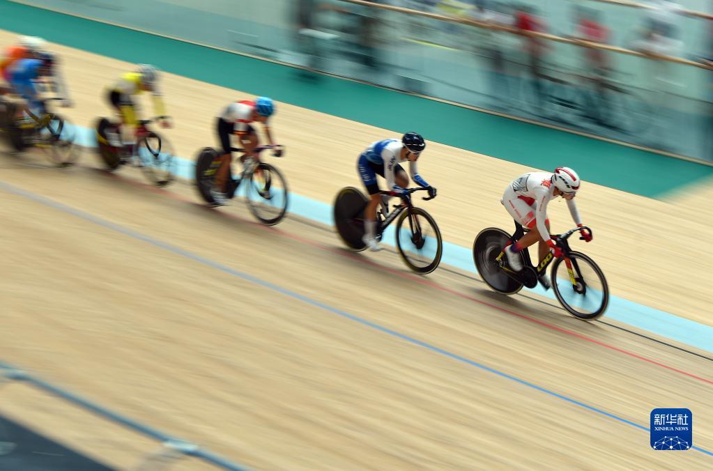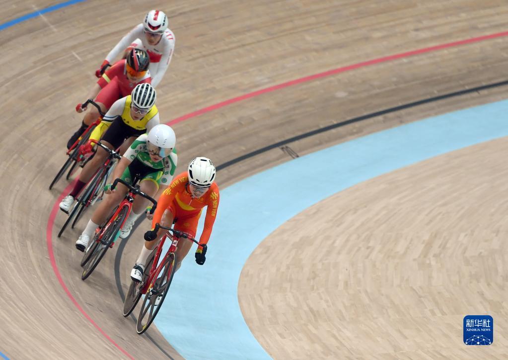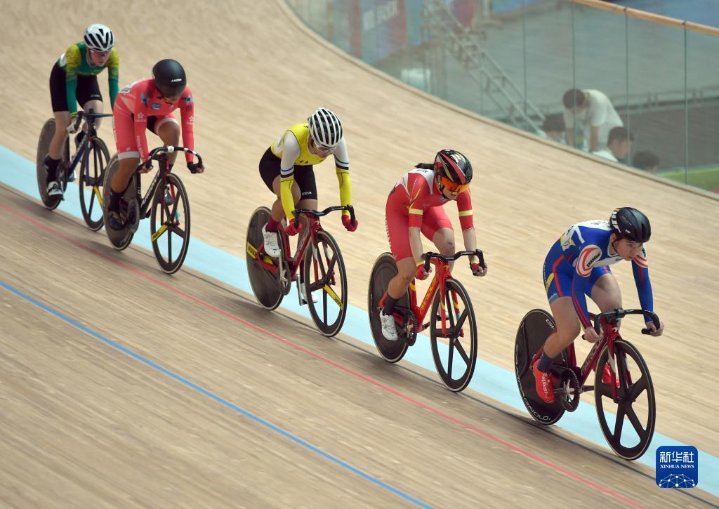 当日,第十四届全运会场地自行车女子全能赛在河南洛阳举行。