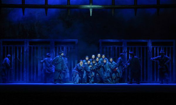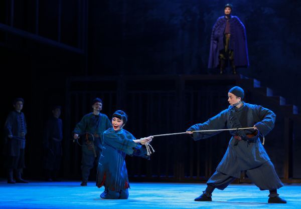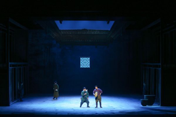 舞台上,田田莲叶、鱼戏其间,舞台场景让人仿若置身江汉水乡。全剧舞台时空的建构偏向写实为主,人物的舞台行动会在比较具体的环境中展开。极力去挖掘出人物的心理空间,在写实的空间里寻求有内涵的意象表达。