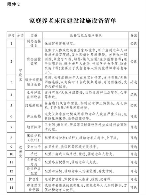 对符合条件的老年人居住环境和生活空间进行必要的适老化与智能化改造,将专业照护服务延伸至老年人家中。建床服务半径在中心城区不超过15分钟,偏远农村地区不超过30分钟。家庭养老床位不收取床位费,服务收费标准由服务机构自主合理定价,明码标价,主动公示,并在服务协议中予以明确。