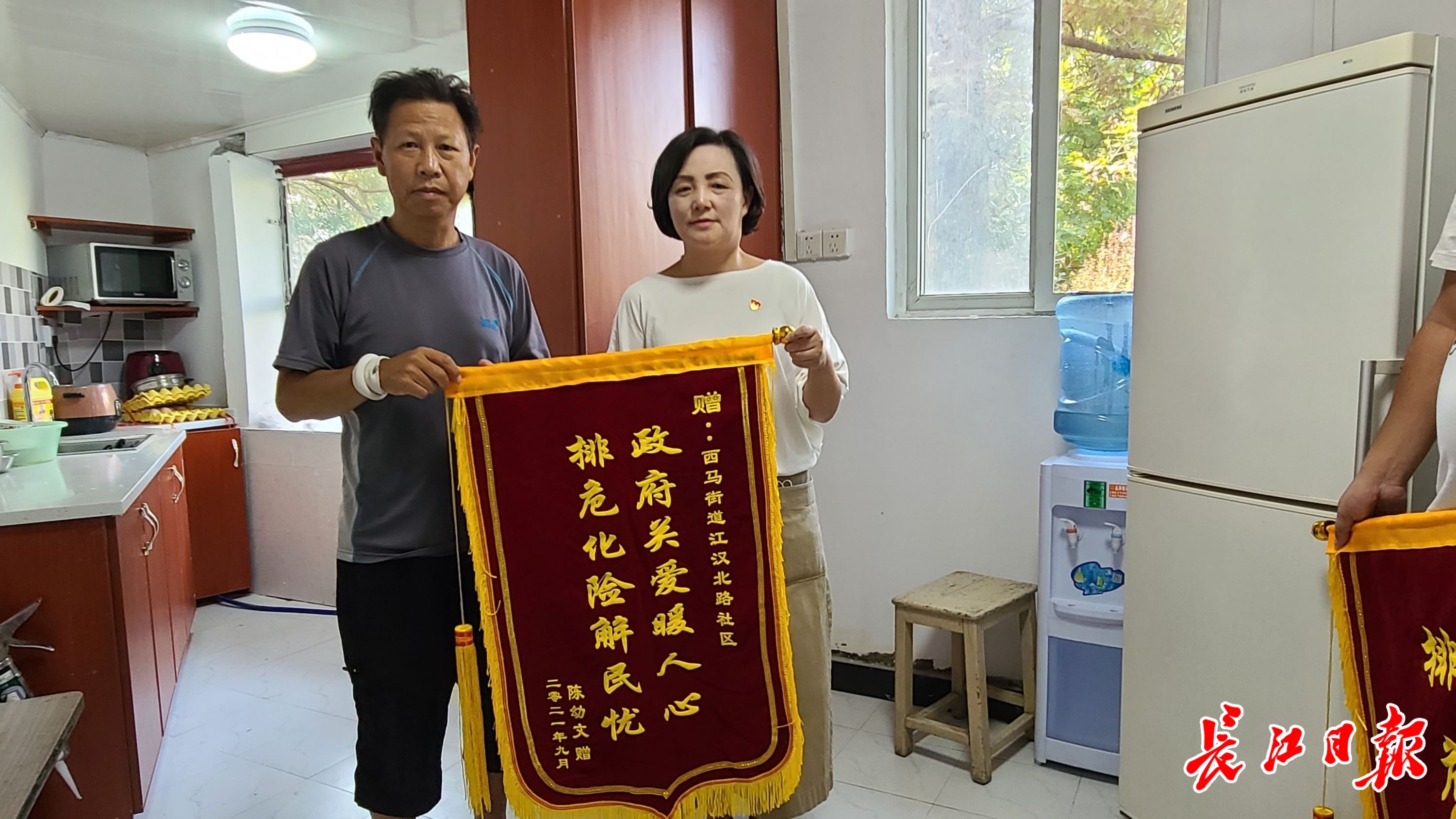 陈先生拿出两面精心准备的锦旗,送给看望他的江汉北路社区工作人员和中百集团代表,“现在的变化真的是太大了。感谢所有帮助我们的人!”
