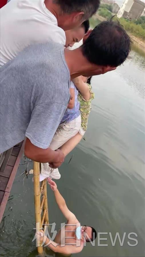 岸上的民警及时找来一把木梯,与热心群众共同施救。扶梯子、背人、水里托、岸上拉……很快,女子被众人合力救上岸。