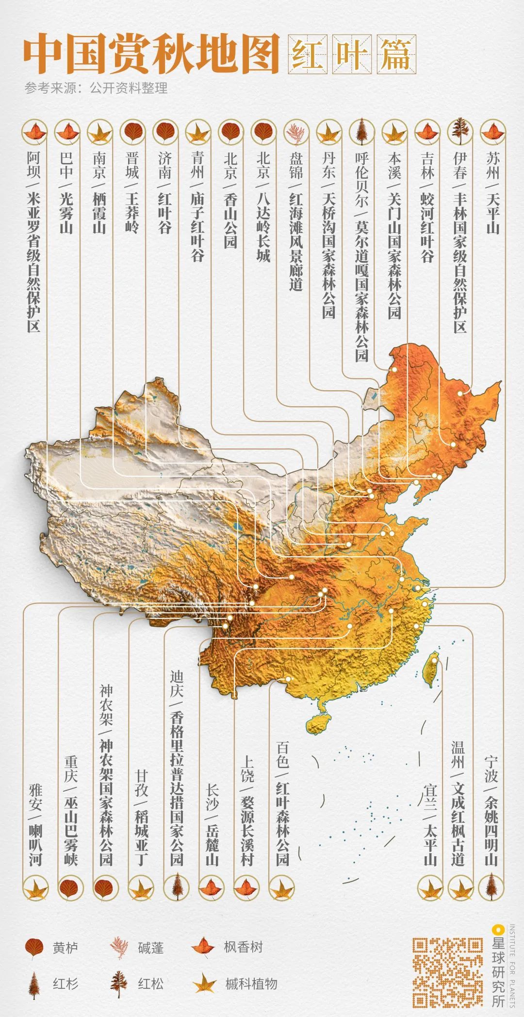 (中国赏秋地图⎜渲染篇,制图@郑艺&郑伯容/星球研究所)