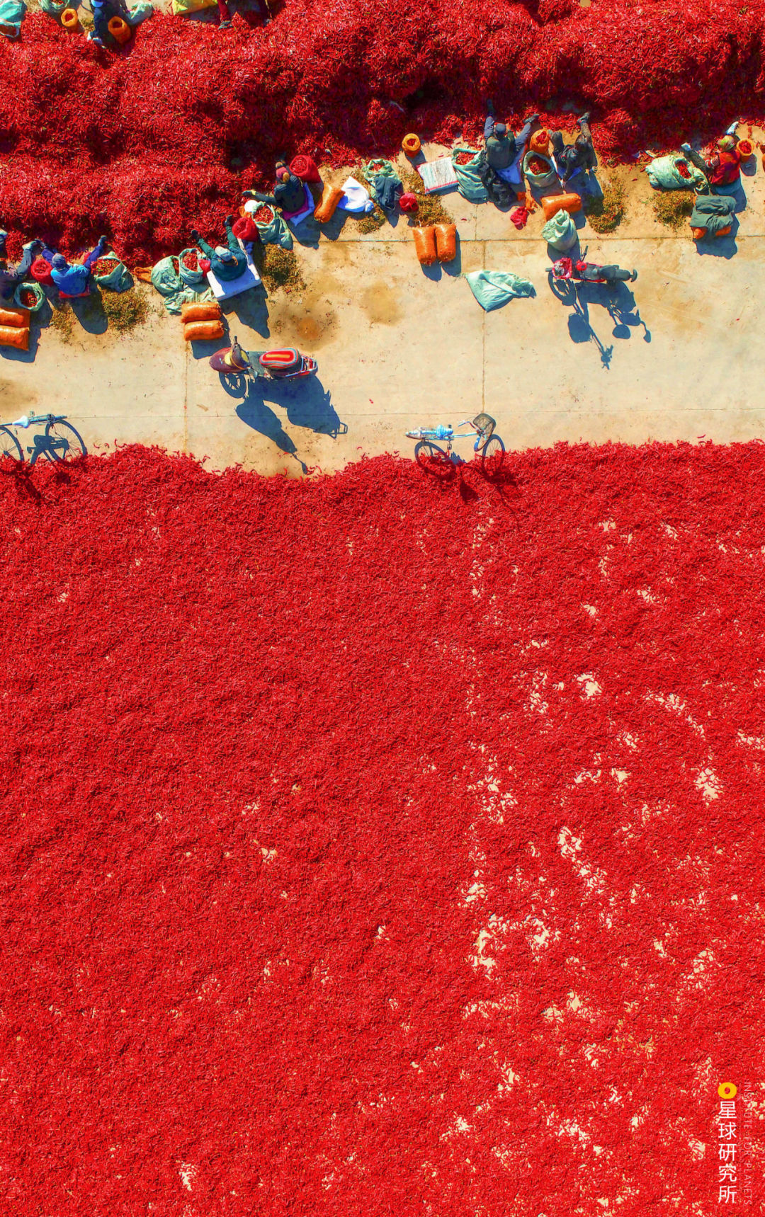 (出自晋朝陶潜《和郭主簿》;下图为吉林白城洮南市,农民们在晾晒刚刚采摘的辣椒,摄影师@邱会宁)