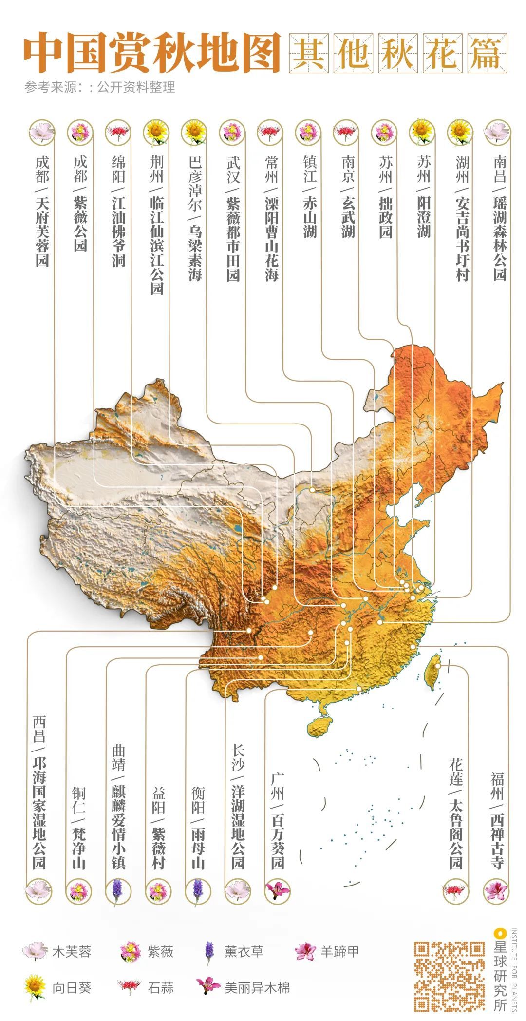(中国赏秋地图⎜其他秋花篇,制图@郑艺&郑伯容/星球研究所)