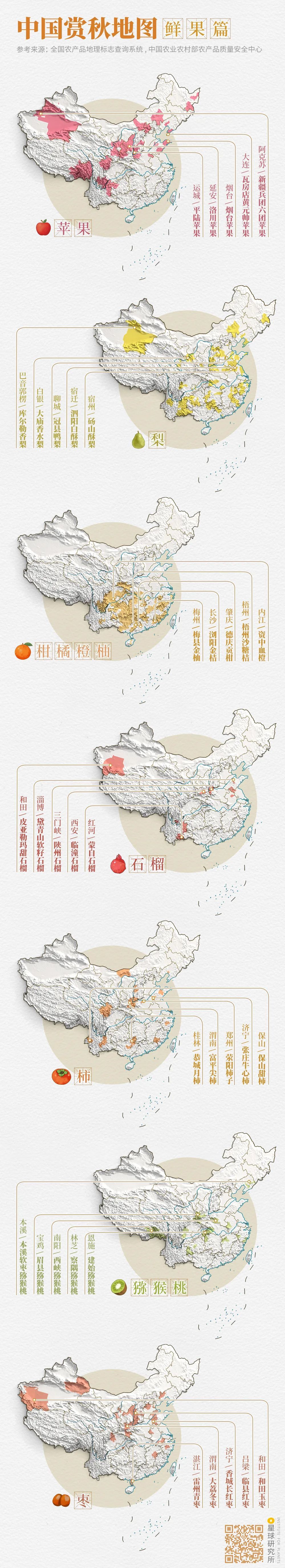 (中国赏秋地图⎜鲜果篇,制图@郑艺&郑伯容/星球研究所)