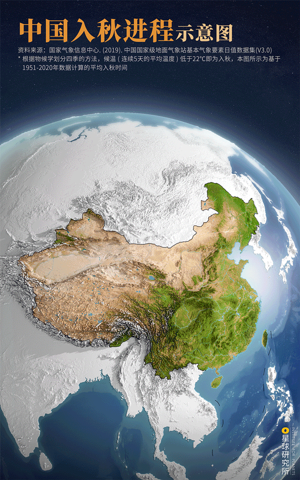 (中国入秋进程示意图,制图@郑艺&郑伯容/星球研究所)