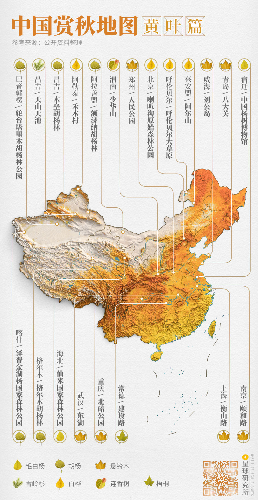 (中国赏秋地图⎜黄叶篇,制图@郑艺&郑伯容/星球研究所)